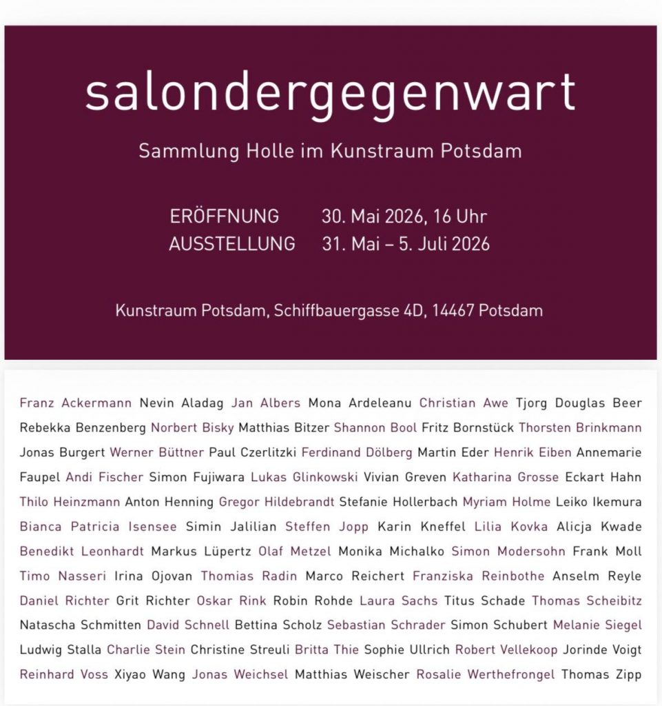 Group exhibition, Sammlung Holle/salondergegenwart, Kunstraum Potsdam, May 30 – July 5, 2026